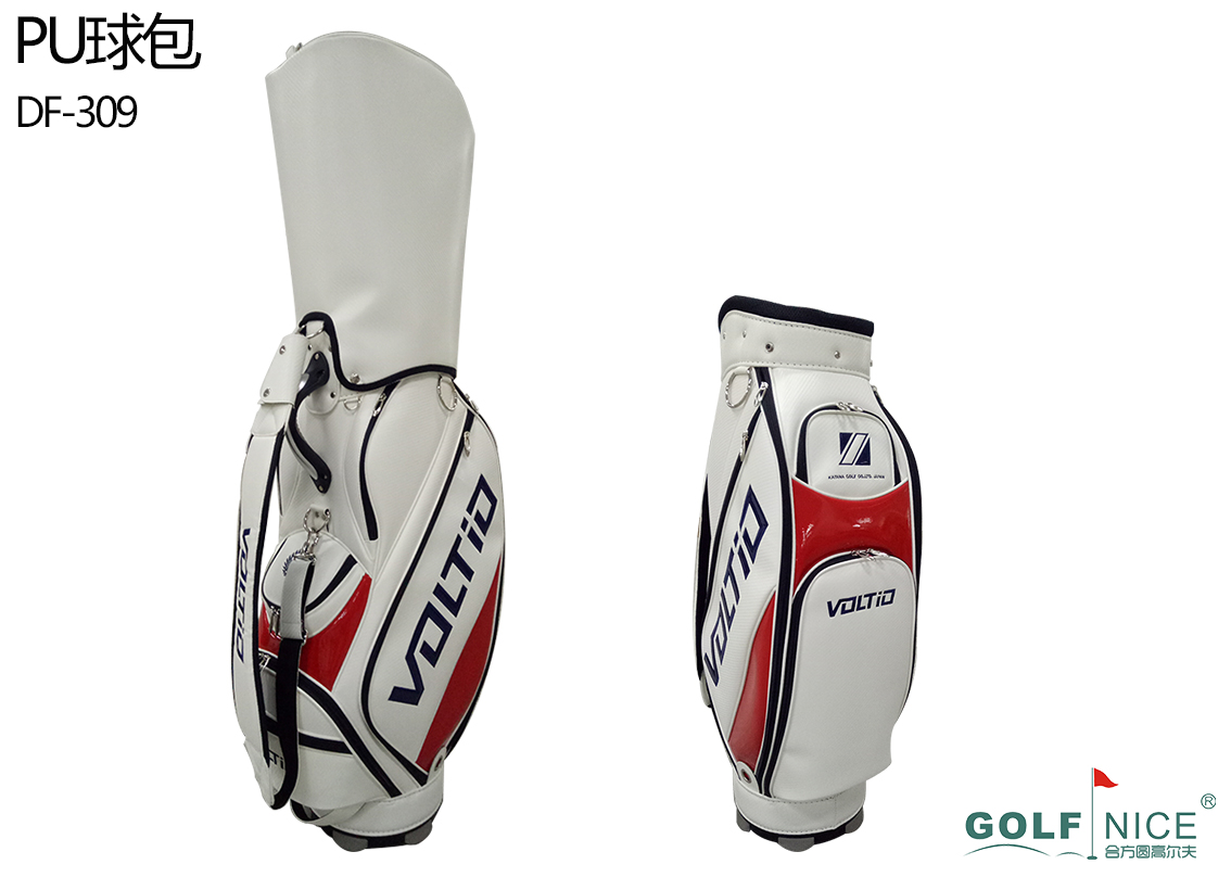 结构,球包的主体结构的合理性完全可以体现在外观上,比例失调容易前后失衡;此外,球杆装满球包时,其平衡性和稳定性可以考验球包的结构和设计的合理性,这主要是球车包;还有,是背带和把手设计的合理性可以省力,主要是看把手设计和背带设计着力点和舒适性。