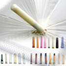 广告伞中棒 (Umbrella Shaft):中棒部分用于连接及支撑雨伞骨,通常每支推广伞只有1支中捧,中捧共有铁 (Metal)/铝 (Aluminum)/玻璃纤维 (Fiberglass)3种物料可供选择。铁的价钱比较平,但比较重,铝中棒是较轻,价钱较高。玻璃纤维中棒轻而坚硬,适合用在27'以上伞面较大的高尔夫球伞或户外伞,价钱是最高的。铁中棒必须配上铁伞架,而铝中棒必须配上铝伞架。